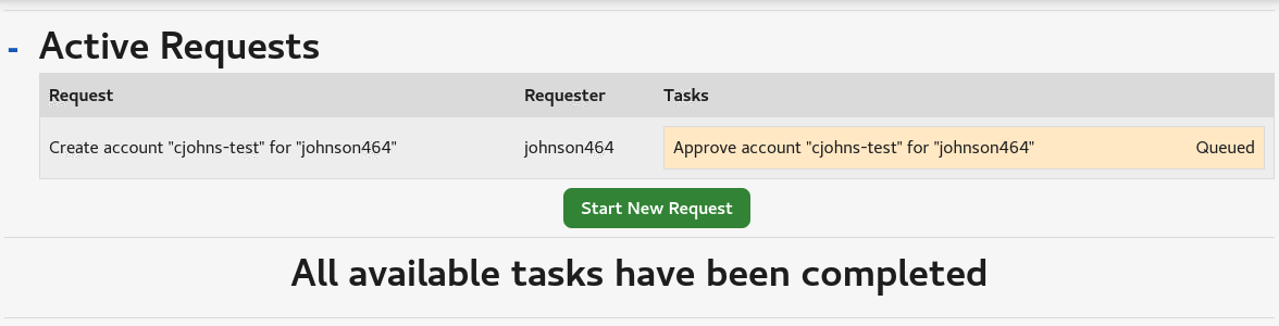 Once you submit, you can see the status of your request in your Home page. A new account creation needs to be approved by your Computer Coordinator and then provisioned by LC support.