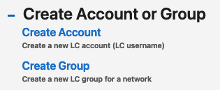If you have never used LC resources before or you'd like an additional LC account, you will click on Start New Request and then use the "Create Account or Group" set of requests: