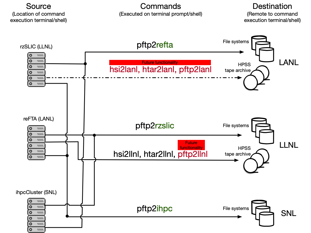 | future functionality (hsi2lanl, htar2lanl, pftp2lanl) | LANL HPSS tape archive | |