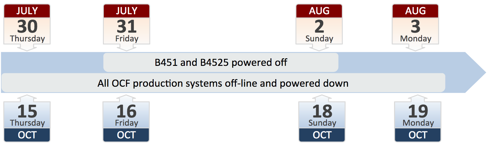| July 31 | Oct. 16 | 7 AM | Power to B4525 and B451 office tower and computer room turned off. |