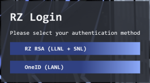 LLNL & SNL users: New login page which uses OUN rather than LC username, along with the appropriate RZ RSA OTP. |